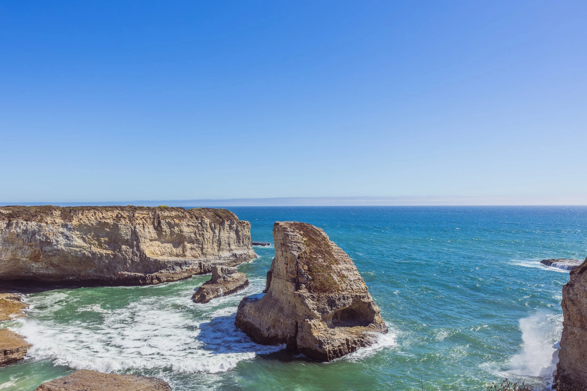 Captured at the height of the day, this set documents the intersection of harsh light and ancient stone. The collection focuses on the stark contrast between the deep Pacific blues and the sun-bleached surfaces of the cove’s iconic central spire.