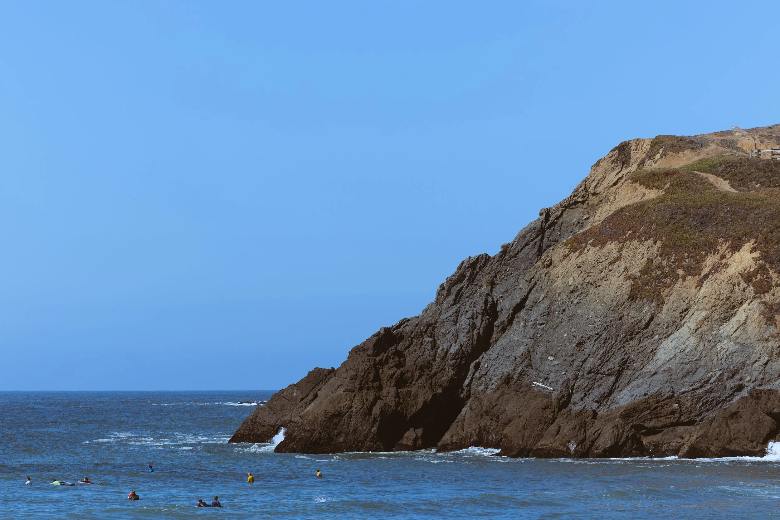 Exploring the liminal space where the Pacific Ocean meets the Marin Headlands, this series documents the shifting boundary of Rodeo Beach. From the suspended anticipation of surfers in the swell to the historic red-roofed barracks of Fort Cronkhite standing against the hills, the images capture the quiet tension and enduring transition between wild waters, rugged earth, and human history.