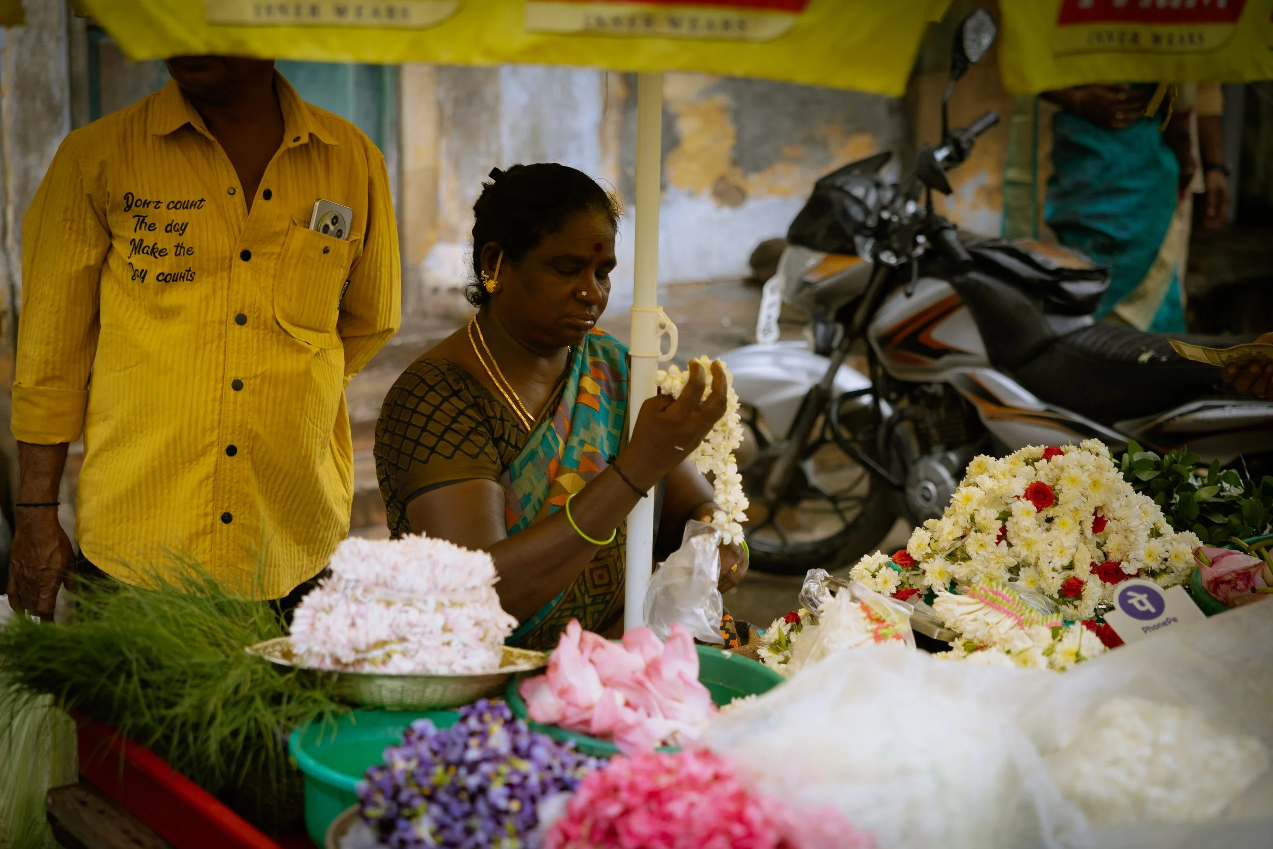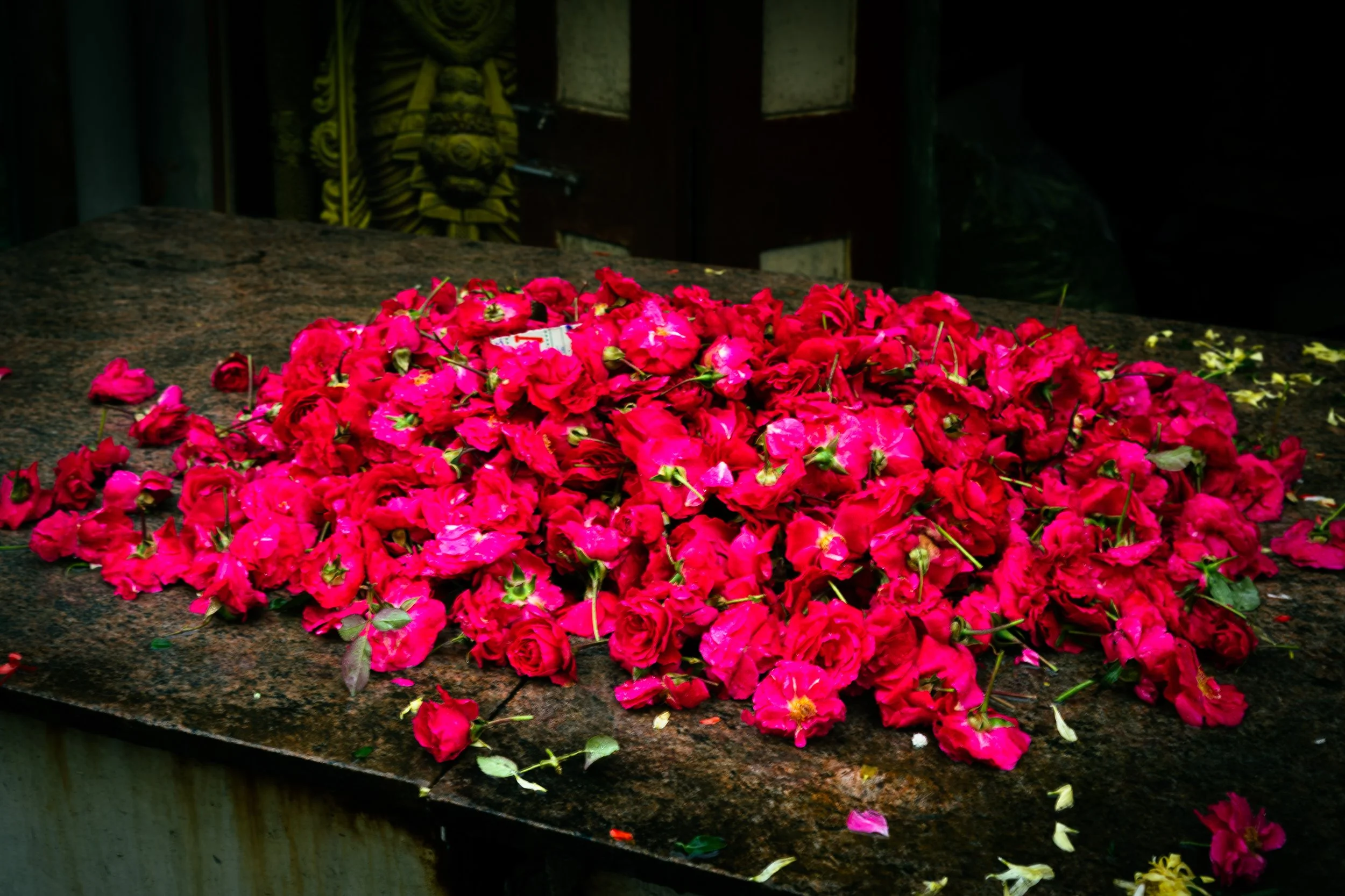 A grounding counterpoint to Ascension, this series shifts the gaze from the divine heights to the vibrant, tactile reality of the streets below. It captures the lingering spiritual energy found in the everyday—from the saturated hues of flower offerings and the weathered textures of the neighborhood, to the quiet, living presence that pulses in the shadow of the temple.