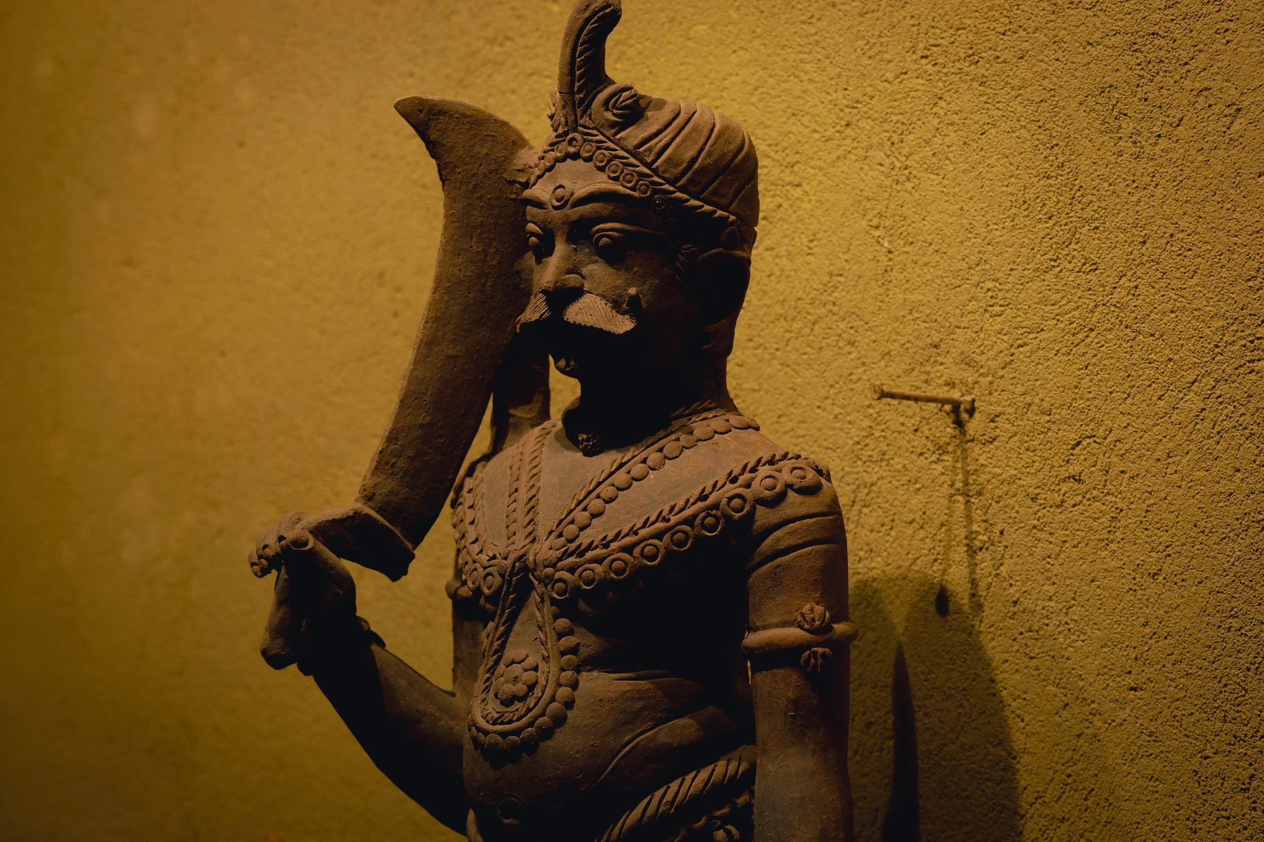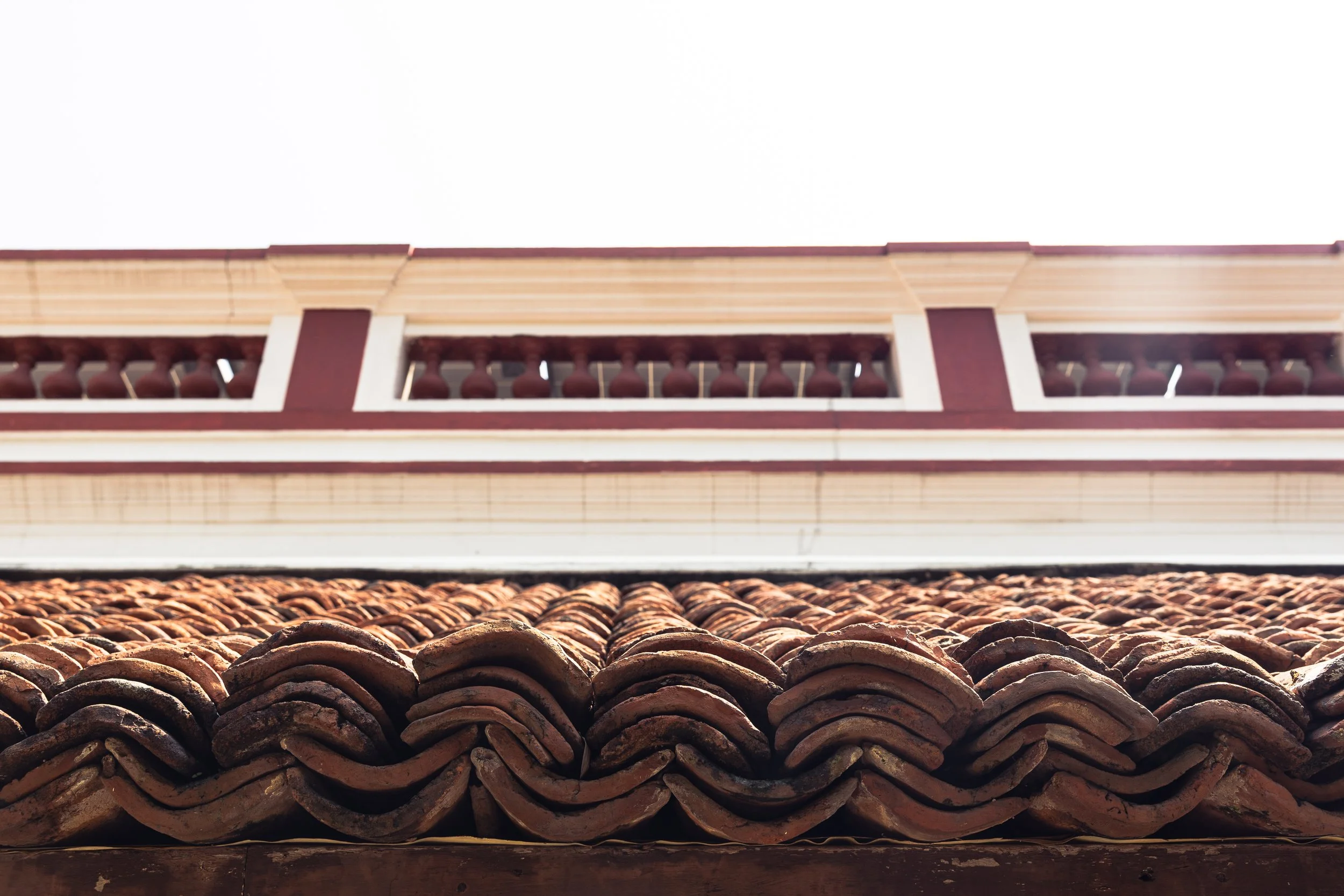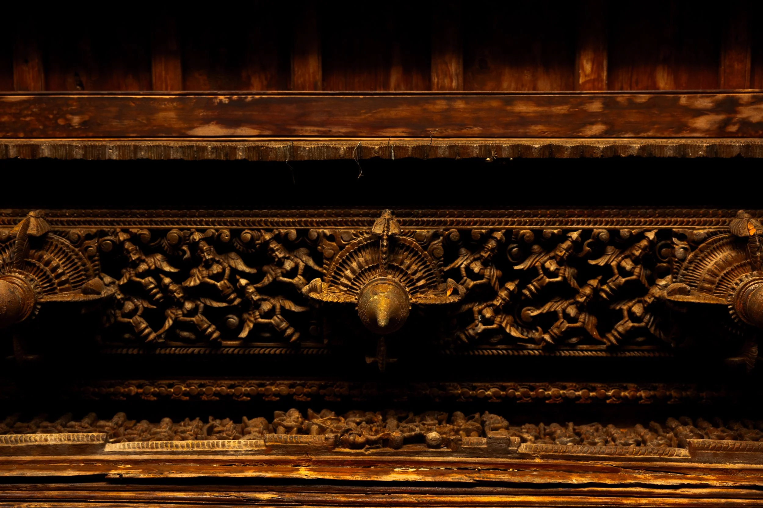 An intimate exploration of the architectural soul preserved within Dakshinchitra, focusing on the tactile foundations of South Indian heritage. This collection captures the rhythm of traditional craftsmanship, from the undulating patterns of terracotta roof tiles and the cool, shadowed depth of granite-pillared verandas to the intricate storytelling found in carved wooden friezes and ceilings. The series grounds the viewer in the region's cultural fabric through detailed studies of everyday artifacts, such as woven baskets and shell ornaments, alongside the stoic, protective gaze of terracotta village deities.